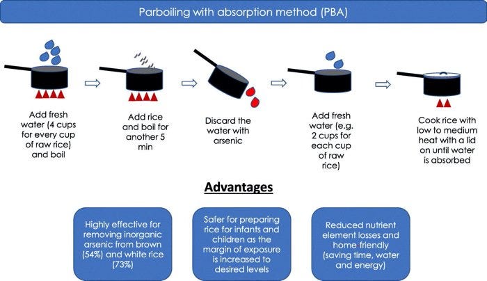 Parboiled rice significantly reduced the arsenic exposure, while retaining the nutrients. Here’s how it works…