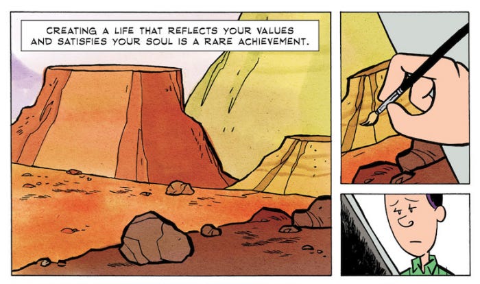 The best comic strip of all time was Calvin and Hobbes, by Bill Watterson. He gave a wonderful graduation speech at his alma mater, Kenyon College, in 1990, and another comic artist turned this speech into a comic strip based on Bill Watterson's drawing style. It's wonderful. Please check it out here.